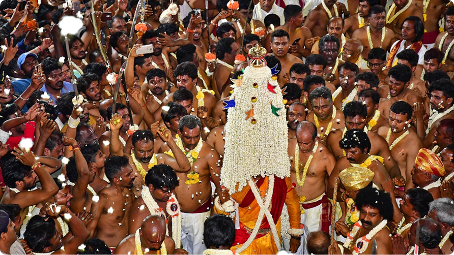 Beneath its modern skin, the city still pauses for festivals that belong as much to memory as they do to the present. Many have witnessed the Karaga festival, staying awake through the night. Families and friends run to the main roads to join the crowds. The bearer balances a floral pyramid upon his head, draped in a silk saree and ornaments, moving steadily through the crowd with a sword held aloft. The Bengaluru Karaga is a 9-day, 800-year-old traditional festival that began with the settlement of the Thigala community. It begins at the Dharmaraya Swami Temple, pauses to pay respects at the Hazrat Tawakkal Mastan Dargah in Cottonpete (a significant marker of community and respect), continues to other temples, and returns to Nagarathpete.