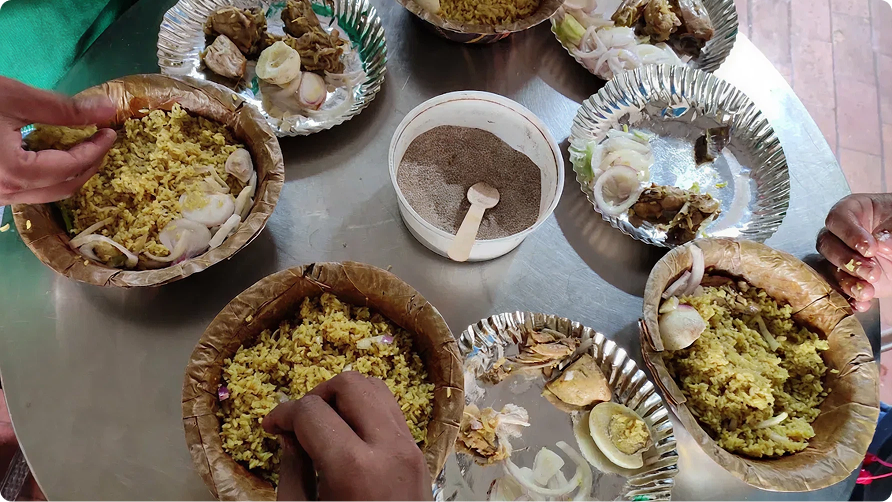 By the 1920s, establishments such as Shivaji Military Hotel began serving this style of biryani commercially. What began as sustenance gradually became tradition. Over time, donne biryani turned into a ritual meal across neighbourhoods.